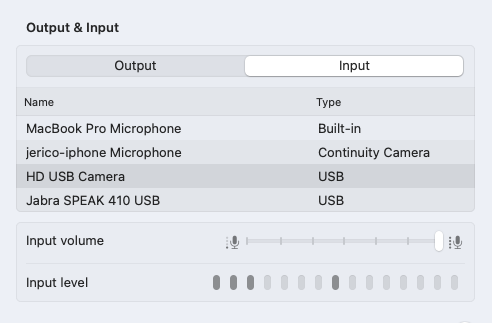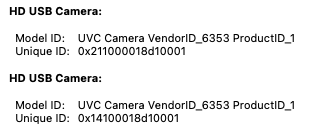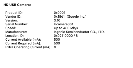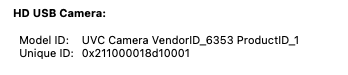 It shows up as a USB Video Class (Webcam), Mic, and Speaker.