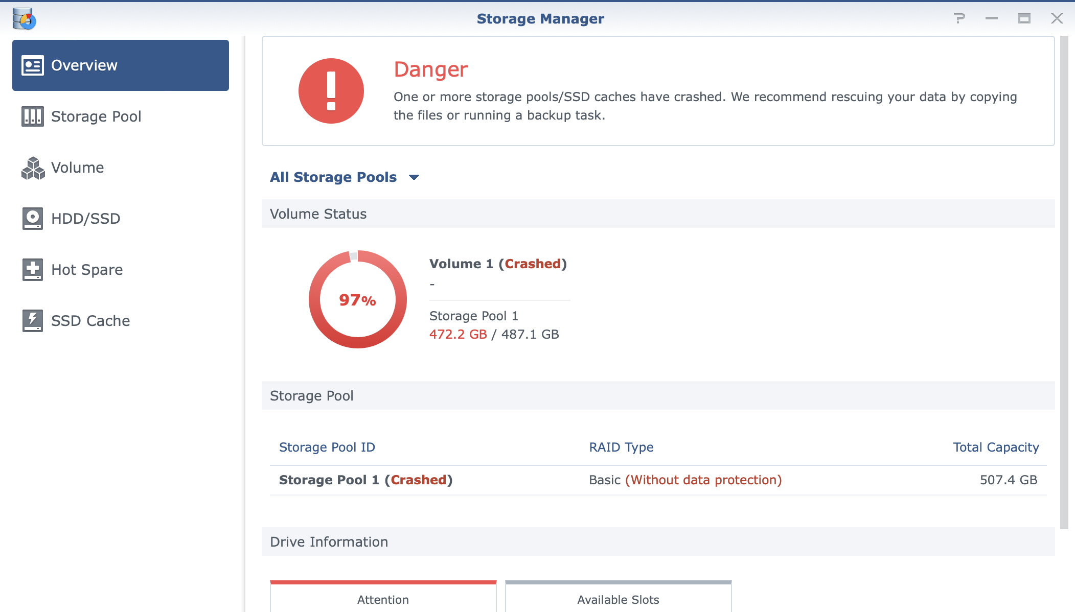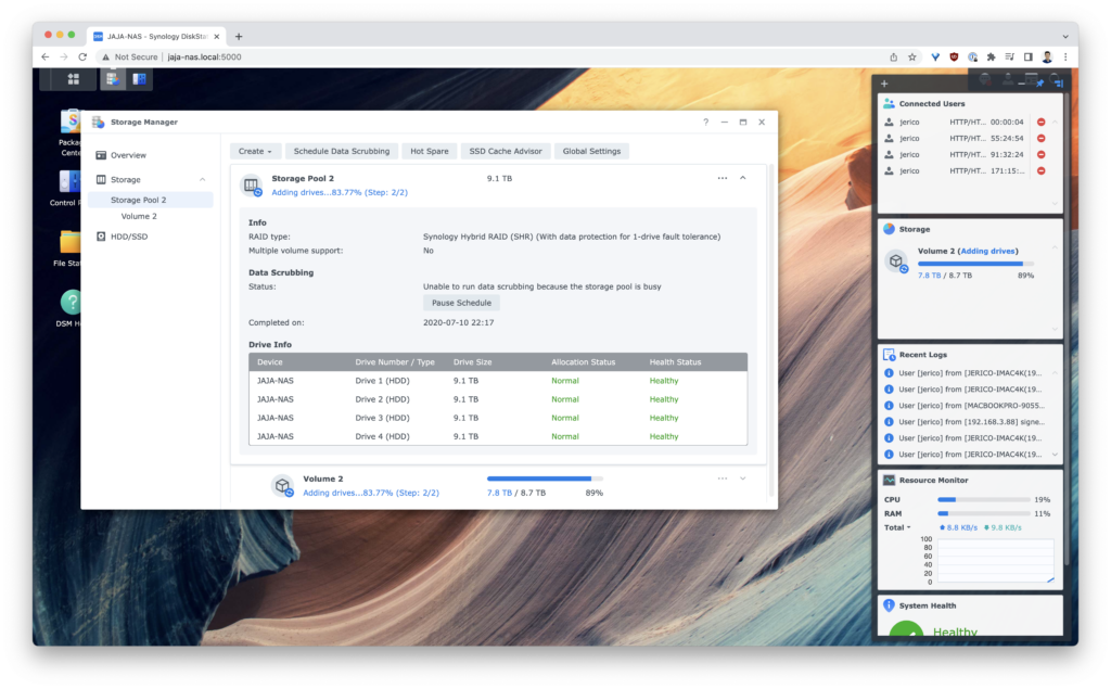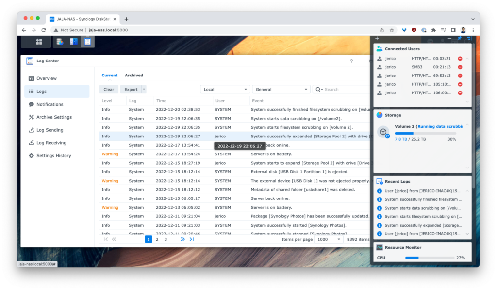 I was restarting a Docker container in my NAS’ DiskStation and I suddenly got a warning that my primary volume is mounted in read-only mode.